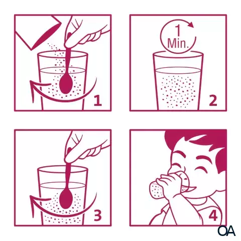 - 1 Beutel OMNi-BiOTiC® 10 AAD Kids (= 2,5 g) in etwas Wasser, (verdünnten) Fruchtsaft, Milch, Joghurt, Müsli o. Ä. einrühren, mindestens 1 Minute Aktivierungszeit abwarten, nochmals umrühren und dann trinken. Empfehlenswert ist die Einnahme auf möglichst leeren Magen, z. B. vor dem Frühstück und/oder vor dem Abendessen.