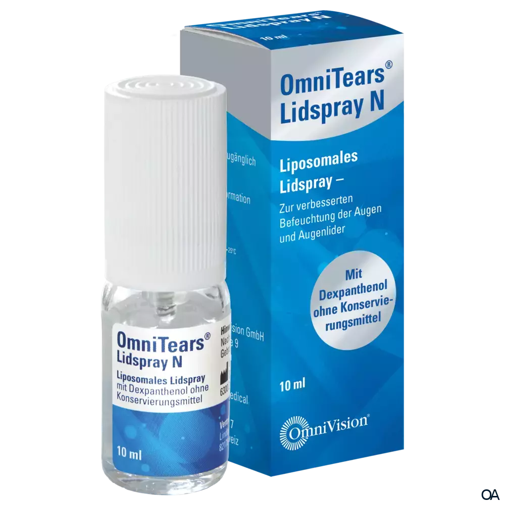 - OmniTears® Lidspray N stabilisiert die Lipidschicht des Tränenfilms, verbessert die Befeuchtung der Augen und der Augenlider.