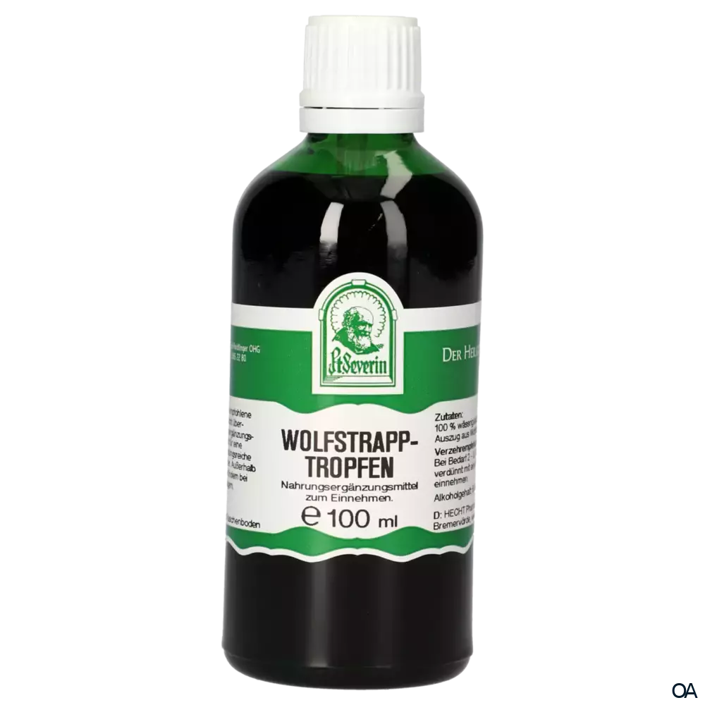 Die Pater Severin Wolfstrapp Tropfen sind ein Nahrungsergänzungsmittel zum Einnehmen. Wolfstrapptropfen enthalten einen hochwertigen wässrig/alkoholischen Auszug aus Wolfstrappkraut im Verhältnis 1:5.Die Pater Severin Wolfstrapp Tropfen sind ein Nahrungsergänzungsmittel zum Einnehmen. Wolfstrapptropfen enthalten einen hochwertigen wässrig/alkoholischen Auszug aus Wolfstrappkraut im Verhältnis 1:5.
