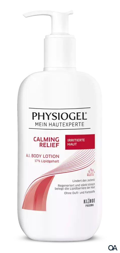 Die Physiogel Calming Relief A.I. Body Lotion für die tägliche Pflege, die irritierte Haut beruhigt. Regeneriert und stärkt klinisch belegt die Lipidbarriere der Haut und lindert den Juckreiz, ohne Duft- und Farbstoffe.Die Physiogel Calming Relief A.I. Body Lotion für die tägliche Pflege, die irritierte Haut beruhigt. Regeneriert und stärkt klinisch belegt die Lipidbarriere der Haut und lindert den Juckreiz, ohne Duft- und Farbstoffe.