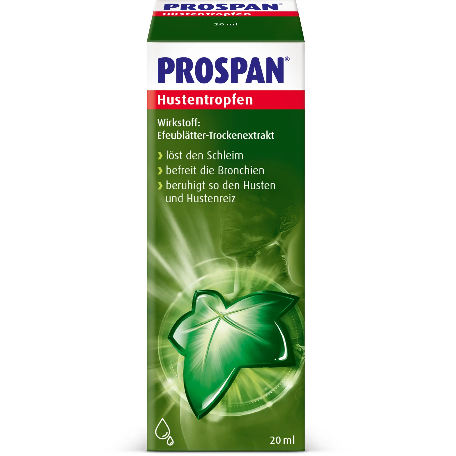 Prospan® Hustentropfen sind ein pflanzliches Arzneimittel zur Schleimlösung bei Husten im Zusammenhang mit Erkältungen. Die Tropfen erleichtern das Abhusten, entspannen die Bronchialmuskulatur und beruhigen so den Husten.Prospan® Hustentropfen sind ein pflanzliches Arzneimittel zur Schleimlösung bei Husten im Zusammenhang mit Erkältungen. Die Tropfen erleichtern das Abhusten, entspannen die Bronchialmuskulatur und beruhigen so den Husten.