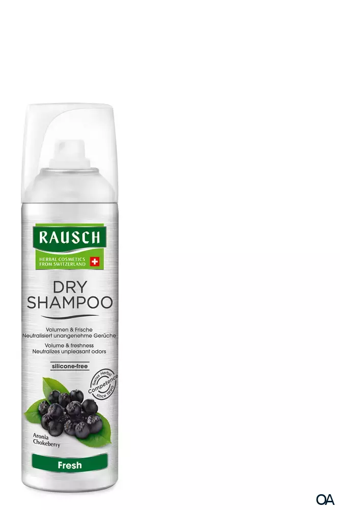 RAUSCH DRY SHAMPOO Fresh - für ein schnelles Auffrischen der Frisur ohne Haarwäsche. Gibt Volumen und Frische und neutralisiert unangenehme Gerüche. Ohne weiße Rückstände. Mit hochwertigen Extrakten aus Schweizer Aronia, Sonnenblume und Weizen.