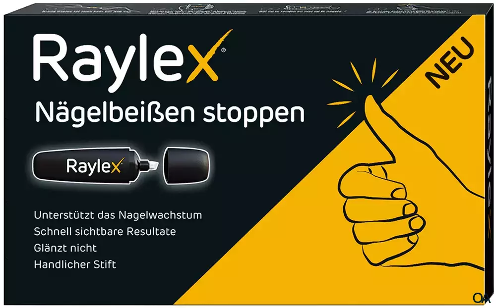 Der Raylex® Stift ist ein Teil des innovativen Systems, um Nägelbeißen zu stoppen.Wenn Sie mit dem Nägelbeißen aufhören wollen, schaffen Sie es in diesem Fall einfach durch „Abschlecken der Finger“!