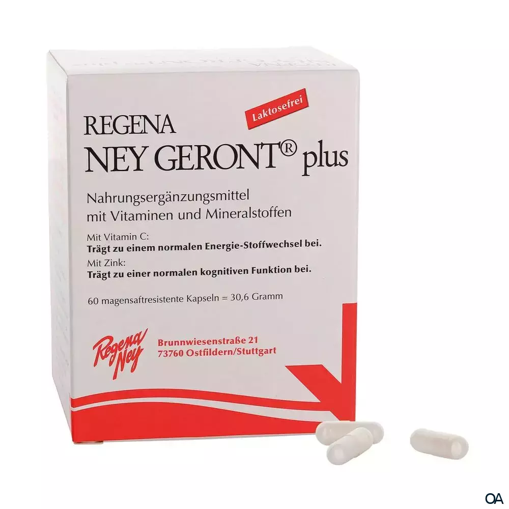 Regena NEY GERONT® plus Kapseln ist ein Nahrungsergänzungsmittel, das speziell für die Bedürfnisse von Menschen in der zweiten Lebenshälfte entwickelt wurde. Es enthält eine einzigartige Kombination aus Vitaminen, Mineralstoffen und Organextrakten.Regena NEY GERONT® plus Kapseln ist ein Nahrungsergänzungsmittel, das speziell für die Bedürfnisse von Menschen in der zweiten Lebenshälfte entwickelt wurde. Es enthält eine einzigartige Kombination aus Vitaminen, Mineralstoffen und Organextrakten.