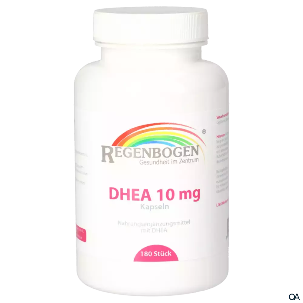 DHEA 10 mg Kapseln von der Regenbogen Apotheke sind ein Nahrungsergänzungsmittel mit Dehydroepiandrosteron (DHEA), einem Hormon, das vom Körper auf natürliche Weise produziert wird.DHEA 10 mg Kapseln von der Regenbogen Apotheke sind ein Nahrungsergänzungsmittel mit Dehydroepiandrosteron (DHEA), einem Hormon, das vom Körper auf natürliche Weise produziert wird.