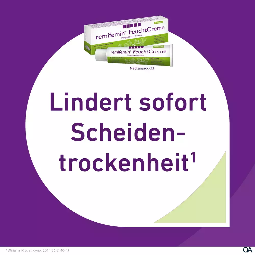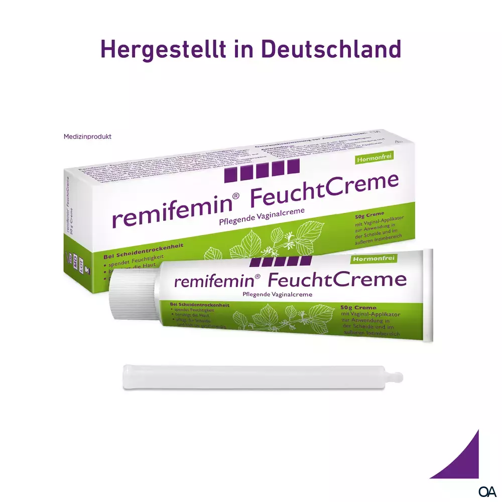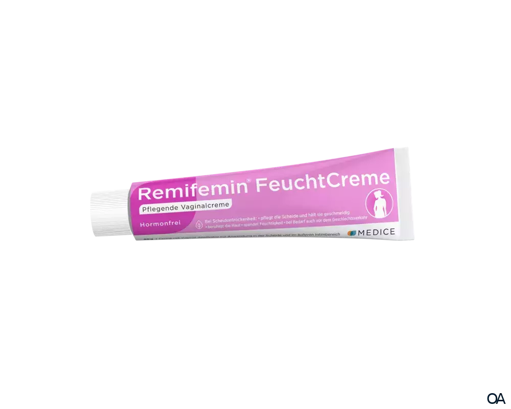 Remifemin® FeuchtCreme ist eine Vaginalcreme mit Hamameliswasser, die Beschwerden durch Trockenheit im Scheideneingang und im äußeren Intimbereich lindert.Remifemin® FeuchtCreme ist eine Vaginalcreme mit Hamameliswasser, die Beschwerden durch Trockenheit im Scheideneingang und im äußeren Intimbereich lindert.