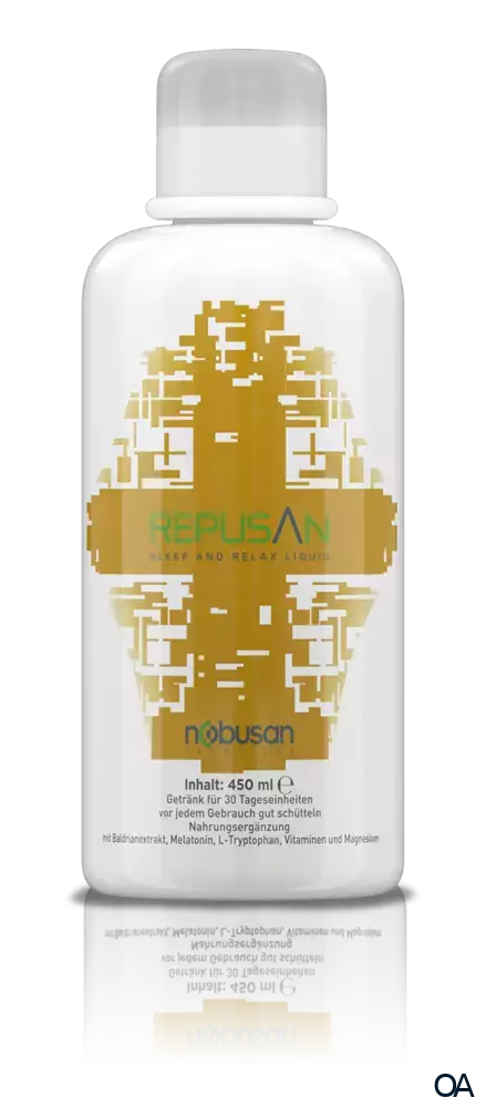 REPUSAN ist ein Sleep und Relax Liquid mit Baldrianextrakt, Melatonin, L-Tryptophan, Vitaminen und Magnesium für einen entspannten Schlaf und mehr Stressresistenz. Nahrungsergänzungsmittel-Komplex für einen erholsameren Schlaf.