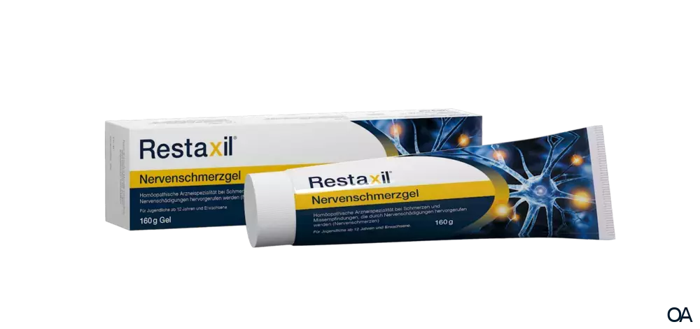 Restaxil® Nervenschmerzgel ist eine homöopathische Arzneispezialität zur Behandlung von Schmerzen und Missempfindungen, die durch Nervenschädigungen hervorgerufen werden (Nervenschmerzen).