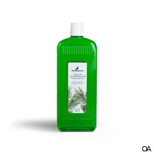 Schuster‘s Tiroler Latschenkiefer Franzbranntwein - Belebt und reinigt auf erfrischende Weise die Haut!Schuster´s Tiroler Latschenkiefer Franzbranntwein ist ein hochwertiges, kosmetisches Produkt, das aufgrund jahrzehntelanger Erfahrung für die äußere Anwendung entwickelt wurde. Erprobt und bewährt, immer und überall. Der würzige, erfrischende Duft des Latschenkieferöls bringt das Gefühl des Gepflegtseins auf die Haut. Eine Teil- oder ganze Körperabreibung erfrischt – entspannt – belebt wohltuend. Einmal kennen gelernt, dann sind Sie unzertrennliche Freunde.