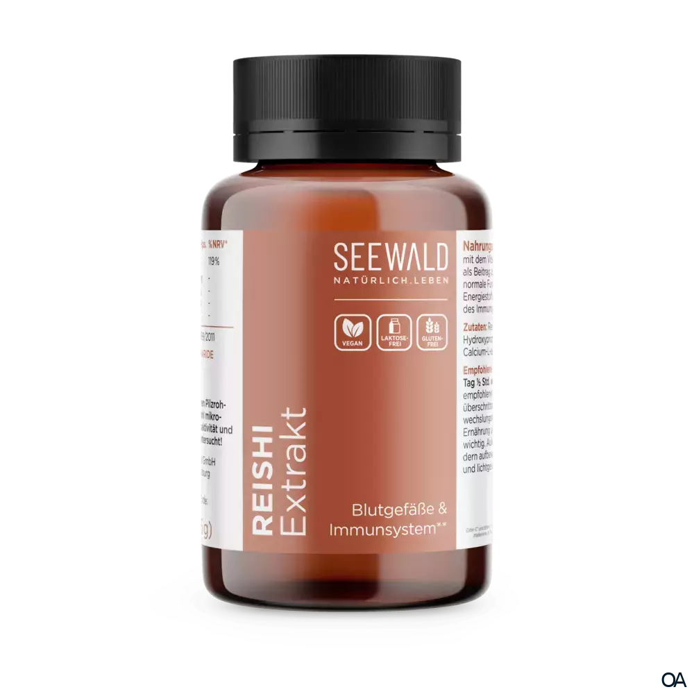 Seewald Ortho Reishi Extrakt Kapseln sind ein Nahrungsergänzungsmittel mit Reishi-Extrakt und Vitamin C. Reishi (Ganoderma lucidum) ist ein traditionell in der TCM verwendeter Vitalpilz.Seewald Ortho Reishi Extrakt Kapseln sind ein Nahrungsergänzungsmittel mit Reishi-Extrakt und Vitamin C. Reishi (Ganoderma lucidum) ist ein traditionell in der TCM verwendeter Vitalpilz.