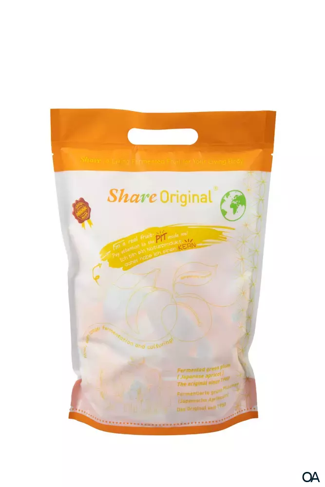 Die Share Original® grüne fermentierte Pflaumen aus der japanischen Aprikose (Prunus Mume) und werden 30 Monate im eigenen Fruchtsaft fermentiert und anschließend mit hochwertigen Kräutern ummantelt.Die Share Original® grüne fermentierte Pflaumen aus der japanischen Aprikose (Prunus Mume) und werden 30 Monate im eigenen Fruchtsaft fermentiert und anschließend mit hochwertigen Kräutern ummantelt.