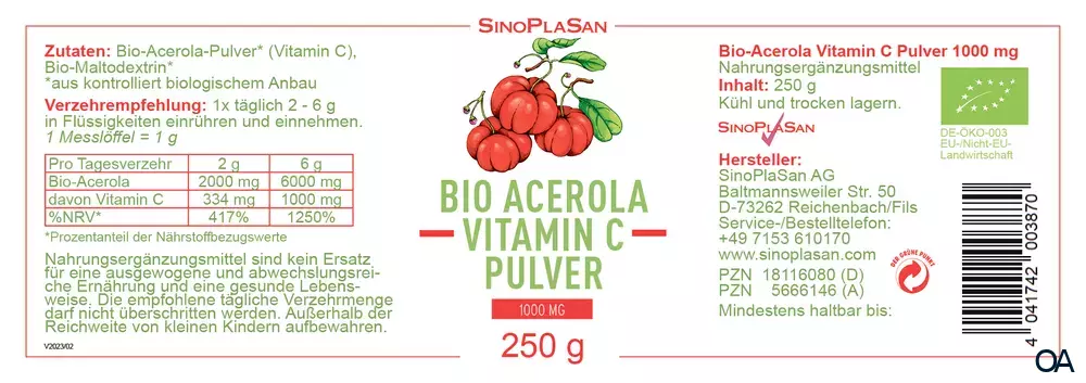 Produktinformationen "SinoPlaSan BIO Acerola Vitamin C Pulver"