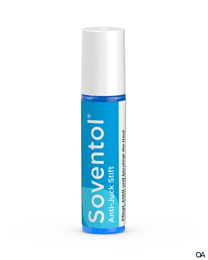 Soventol® Anti-Juck Stift ist ein praktischer Roll-On Stift, auslauf- und bruchsicher, zur lokalen Linderung von Juckreiz und Brennen, z.B. bei Gelsenstichen – ideal für unterwegs. Kühlt wunderbar und pflegt sanft, für die ganze Familie geeignet.Soventol® Anti-Juck Stift ist ein praktischer Roll-On Stift im Handtaschen-Format, auslauf- und bruchsicher, zur lokalen Linderung von Juckreiz und Brennen, z.B. bei Gelsenstichen – ideal für unterwegs. Kühlt wunderbar und pflegt sanft, für die ganze Familie geeignet.