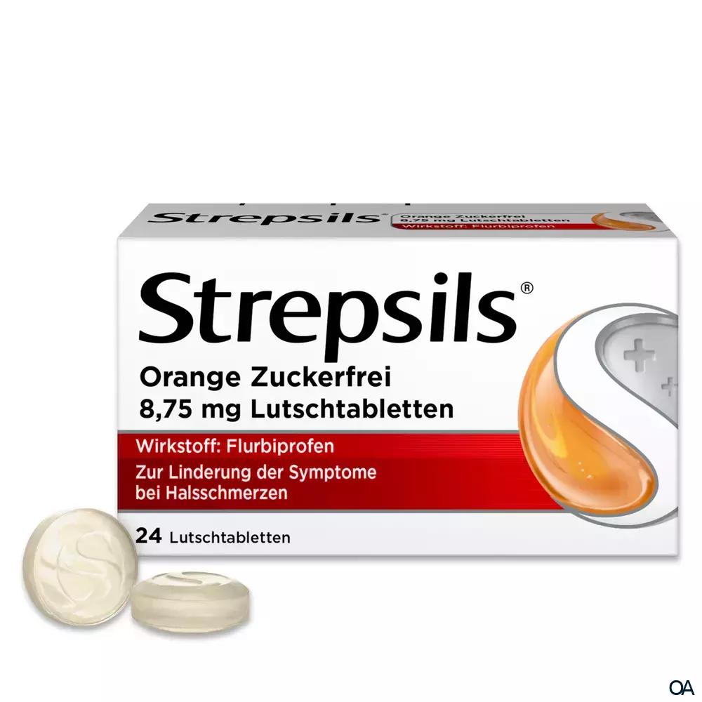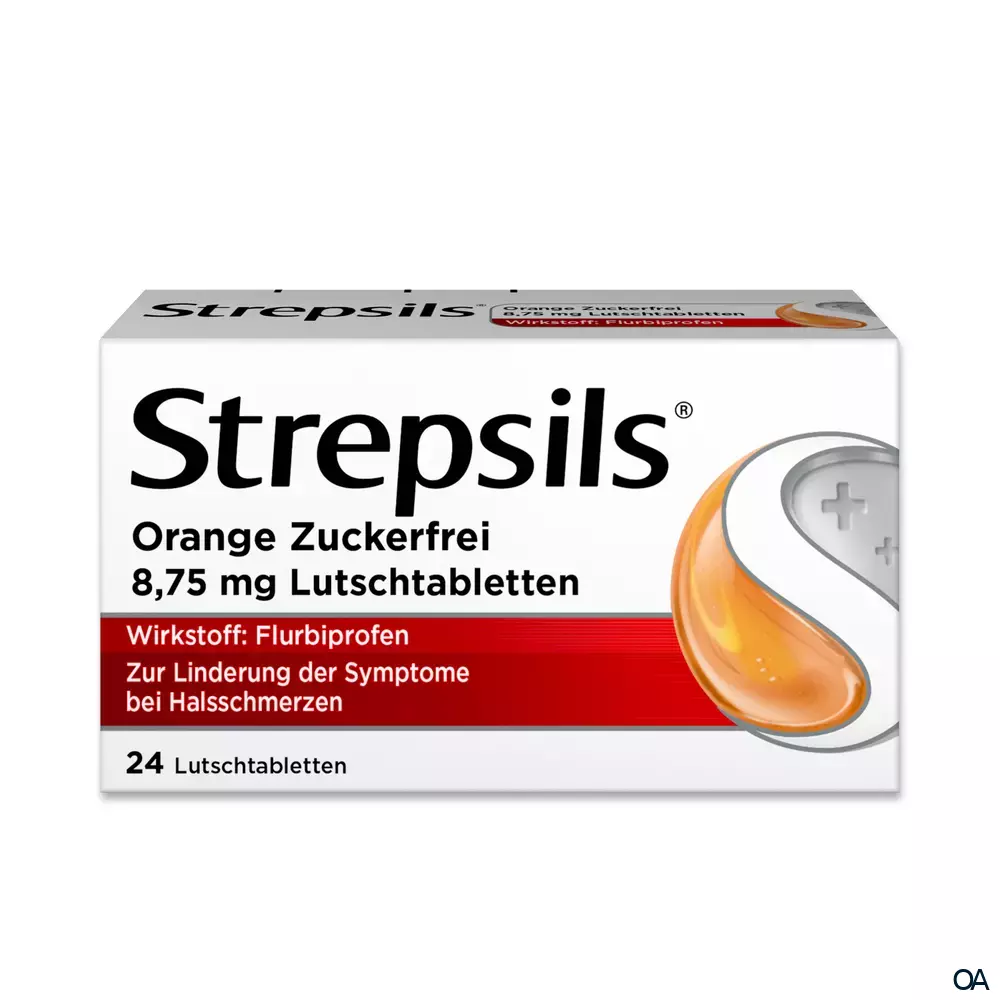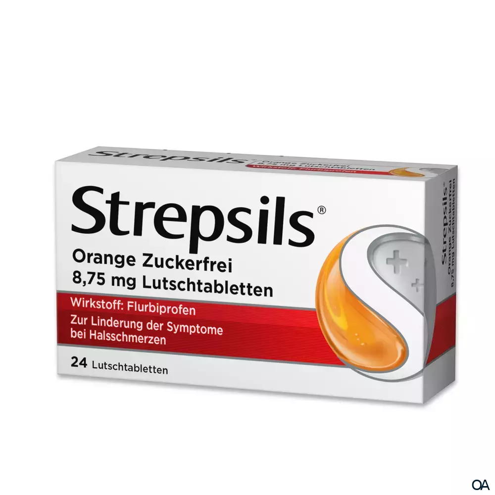 Strepsils Orange Zuckerfrei enthält Flurbiprofen. Flurbiprofen ist ein nicht-steroidales entzündungshemmendes Arzneimittel (NSAR) mit schmerzlindernden, fiebersenkenden und entzündungshemmenden Eigenschaften.Strepsils Orange Zuckerfrei enthält Flurbiprofen. Flurbiprofen ist ein nicht-steroidales entzündungshemmendes Arzneimittel (NSAR) mit schmerzlindernden, fiebersenkenden und entzündungshemmenden Eigenschaften.