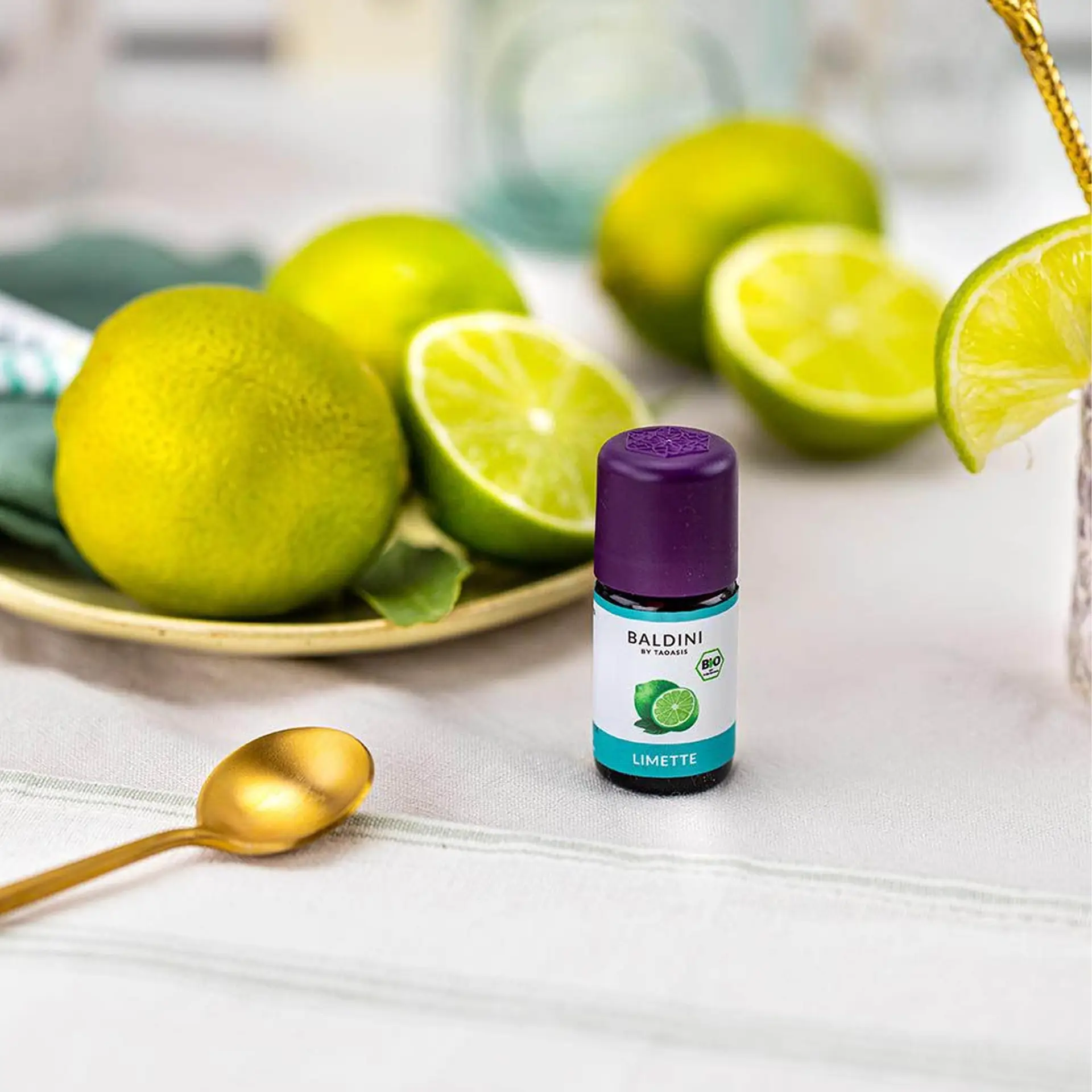 Verleihe deinen Gerichten mit Baldini Bio-Aroma Limette eine spritzige Frische. Ideal für Getränke, Desserts, Cocktails und mehr – für einen belebenden Geschmack.Die natürlichen Düfte zum Essen und Trinken.