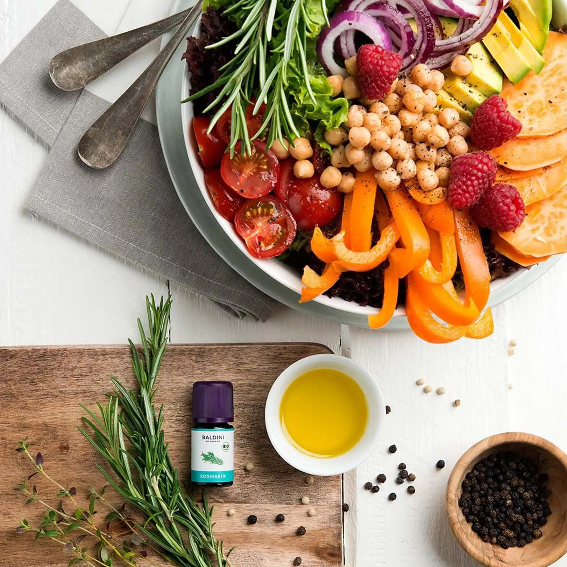 Verleihe deinen Gerichten mit dem Baldini Bio-Aroma Rosmarin ein mediterranes Flair. Ideal für Salate, Gemüse, Brote und Dips mit einem würzig-frischen Aroma.Die natürlichen Düfte zum Essen und Trinken.