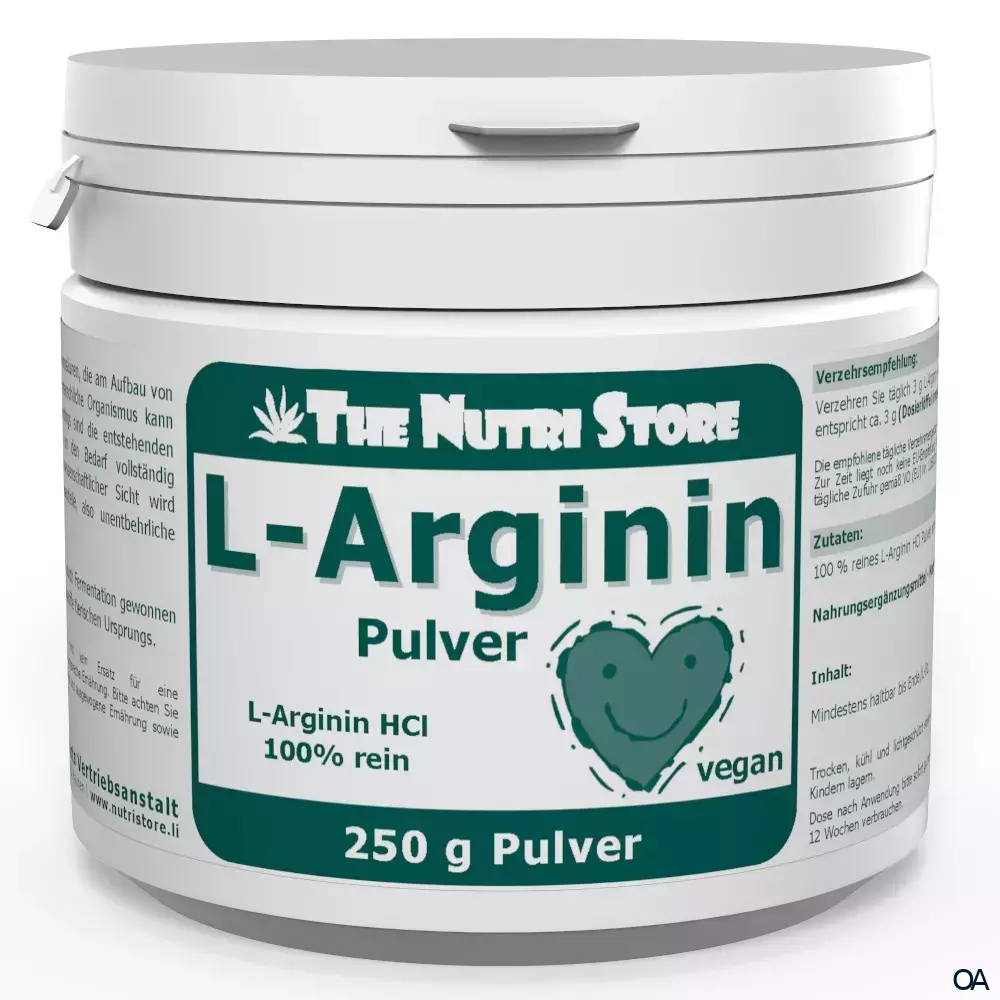 The Nutri Store L-Arginin Pulver ist ein Nahrungsergänzungsmittel aus 100 % reinem L-Arginin HCl. Der menschliche Organismus kann Arginin selbst herstellen, allerdings sind die entstehenden Mengen nicht ausreichend, um den Bedarf vollständig abzudecken.