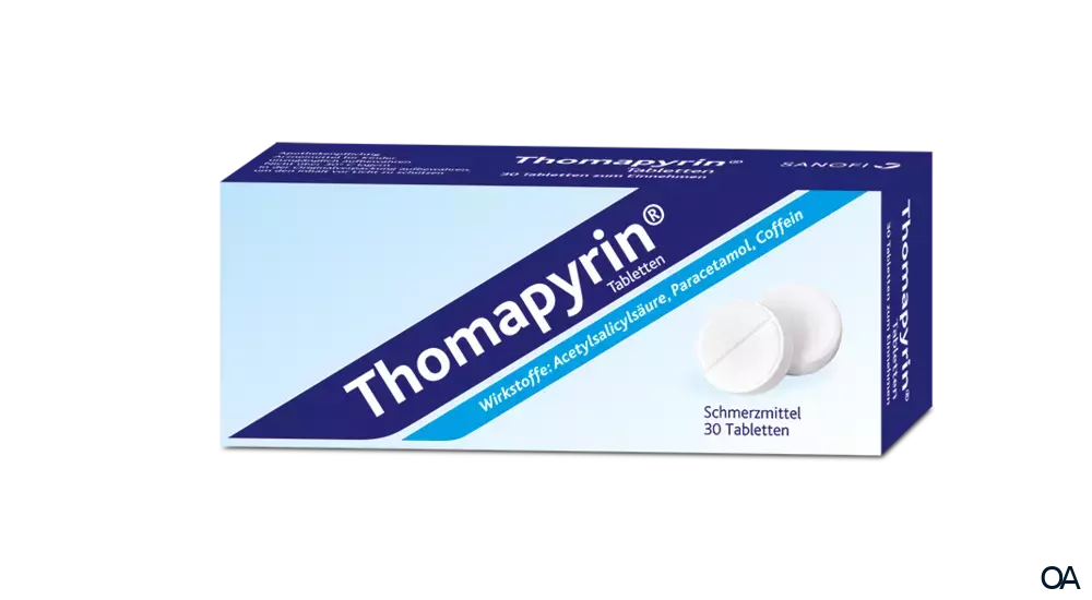 Die in Thomapyrin enthaltenen Wirkstoffe Acetylsalicylsäure und Paracetamol haben eine rasch einsetzende, schmerzstillende, fiebersenkende und entzündungshemmende Wirkung.Die in Thomapyrin enthaltenen Wirkstoffe Acetylsalicylsäure und Paracetamol haben eine rasch einsetzende, schmerzstillende, fiebersenkende und entzündungshemmende Wirkung. Der dritte enthaltene Wirkstoff Coffein verstärkt die schmerzstillende Wirkung der Kombination von Acetylsalicylsäure und Paracetamol nachweislich und mildert Abgeschlagenheit und Müdigkeit bei Erkältungen.