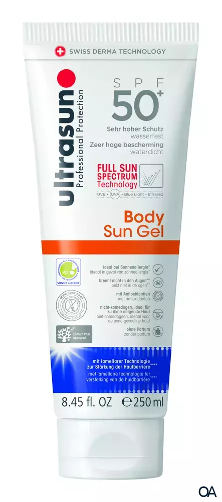 ULTRASUN Sun Gel SPF50+ ist ein schnell einziehendes und wasserfestes Sonnenschutzgel für den Körper. Ideal bei Sonnenallergie und zu Akne neigender Haut.