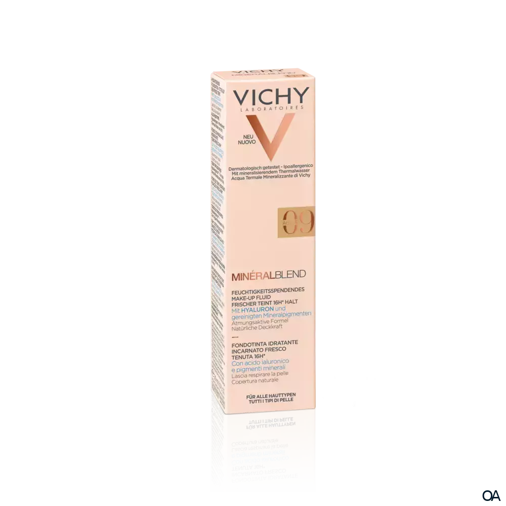 VICHY Mineralblend Fluid 09 - Agate - Ein ultra-leichtes Make-up-Fluid mit Hyaluron. Feuchtigkeitsspendend wie eine Pflege. Die atmungsaktive Minéralblend-Formel enthält Aktiv-Wirkstoffe wie natürliches Hyaluron, gereinigte Mineralpigmente und ...Ein ultra-leichtes Make-up-Fluid mit Hyaluron. Feuchtigkeitsspendend wie eine Pflege. Die atmungsaktive Minéralblend-Formel enthält Aktiv-Wirkstoffe wie natürliches Hyaluron, gereinigte Mineralpigmente und Vulkanischem Wasser von Vichy, die die Haut sofort mit Feuchtigkeit versorgen und pflegen.
