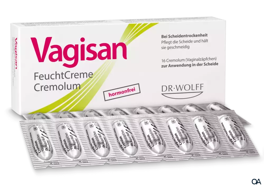 Vagisan FeuchtCreme Cremolum sind hormonfreie Zäpfchen gegen Scheidentrockenheit. Sie lindern schnell und nachhaltig die Beschwerden wie Trockenheitsgefühl, Brennen, Juckreiz und Schmerzen bedingt durch eine trockene Scheide. Auch eine deutliche Linderung von Schmerzen beim Sex ist klinisch belegt.