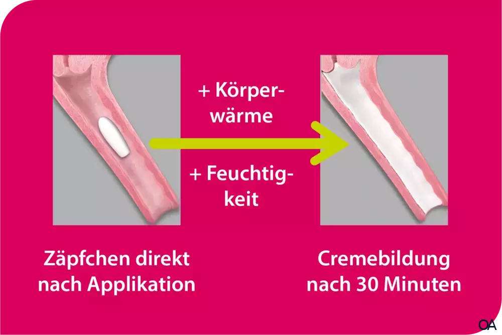 - Das Zäpfchen benötigt ca. 30 Minuten, bis es geschmolzen ist. Bitte halten Sie den entsprechenden Abstand bei nachfolgendem Intimverkehr, um ein Stören von Zäpfchenresten in der Scheide zu vermeiden.