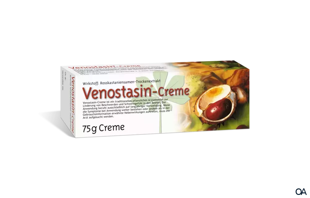 Venostasin Creme ist ein traditionelles pflanzliches Arzneimittel zur Linderung von Beschwerden und Schweregefühl in den Beinen aufgrund einer geringfügigen venösen Durchblutungsstörung.Venostasin Creme ist ein traditionelles pflanzliches Arzneimittel zur Linderung von Beschwerden und Schweregefühl in den Beinen aufgrund einer geringfügigen venösen Durchblutungsstörung.