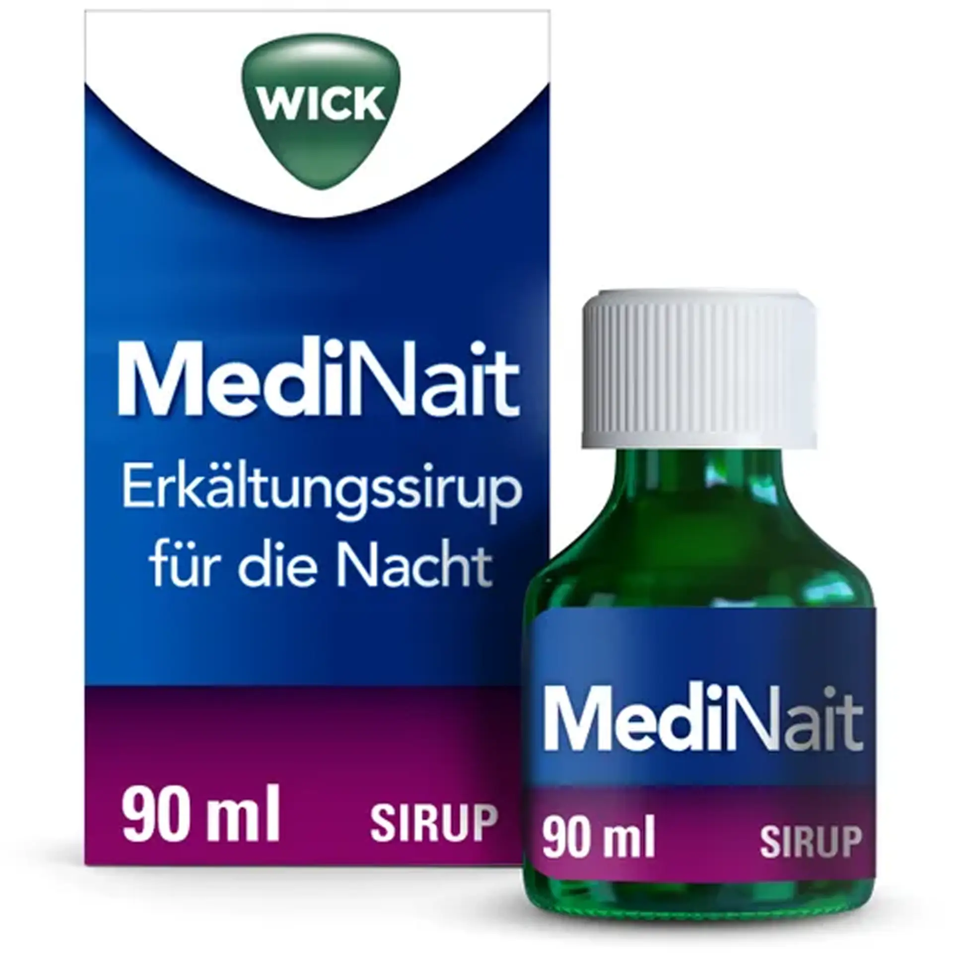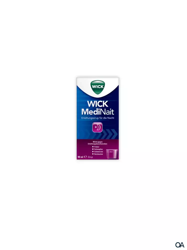 WICK MediNait Erkältungssirup wird angewendet zur symptomatischen Behandlung von gemeinsam auftretenden Beschwerden wie Kopf-, Glieder- oder Halsschmerzen, Fieber, Schnupfen und Reizhusten infolge einer Erkältung oder eines grippalen Infektes bei Erwachsenen und Jugendlichen ab 16 Jahren.