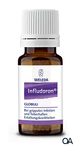 Bei den ersten Erkältungsanzeichen eingenommen, können Infludoron® Globuli den vollständigen Ausbruch der Erkrankung oft noch verhindern oder abmildern. Eisenphosphat (Ferrum phosphoricum) stärkt die natürlichen Abwehrkräfte, lindert Entzündungserscheinungen und reguliert die Körpertemperatur, ohne Fieber zu unterdrücken. Eisenhut beruhigt bei hohem Fieber und lindert Schmerzen. Eukalyptus verhilft zu besserer Durchatmung. Zaunrübe und Wasserhanf regulieren die vermehrte Schleimbildung und wirken lindernd bei Gliederschmerzen und Zerschlagenheitsgefühl. Infludoron® Globuli sind alkoholfrei und eignen sich besonders für empfindliche Personen, Kinder, Schwangere, Säuglinge und stillende Mütter.