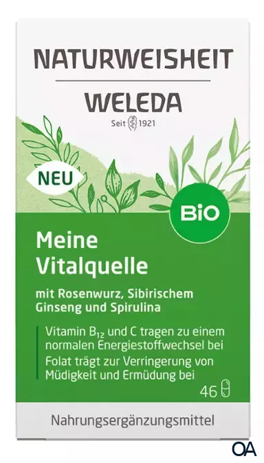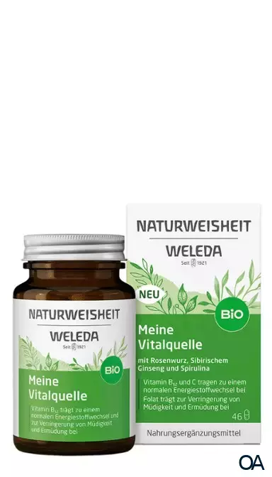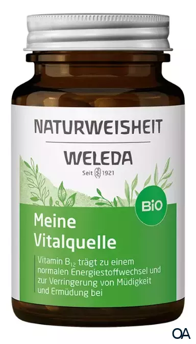 - Meine Vitalquelle ist ein Nahrungsergänzungsmittel mit Vitamin B12, Folat und Vitamin C aus natürlichen Quellen, Rosenwurz, Grüntee, Sibirischem Ginseng und Spirulina. Unterstützen Sie Ihren Energiestoffwechsel – natürlich, inspiriert von der Weisheit der Natur. Vitamin B12 und Vitamin C tragen zur Verringerung von Müdigkeit und Ermüdung sowie zu einem normalen Energiestoffwechsel bei. Folat trägt zur normalen psychischen Funktion bei.