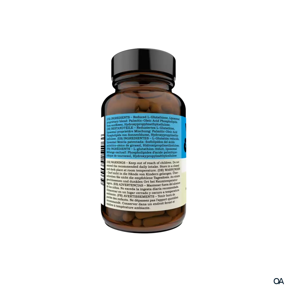 - Zutaten: Glutathion, Liposomale Proprietäre Mischung: Palmitin-Ölsäure-Phospholipide aus Sonnenblumenöl und Palmöl, Reismehl, Kapselhülle: Pflanzliche Cellulose (HPMC).