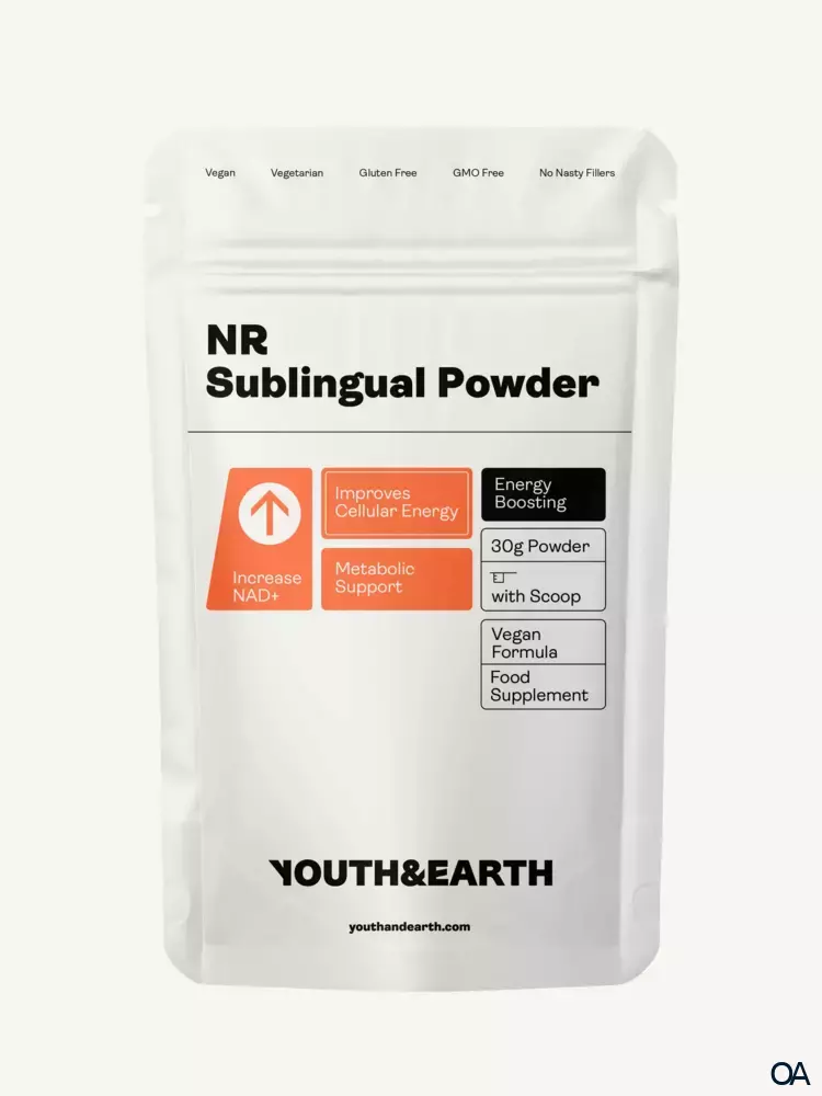 Das Youth & Earth NR Sublingual Pulver ist ein Nahrungsergänzungsmittel mit Nicotinamid-Ribosid-Chlorid in Pulverform.