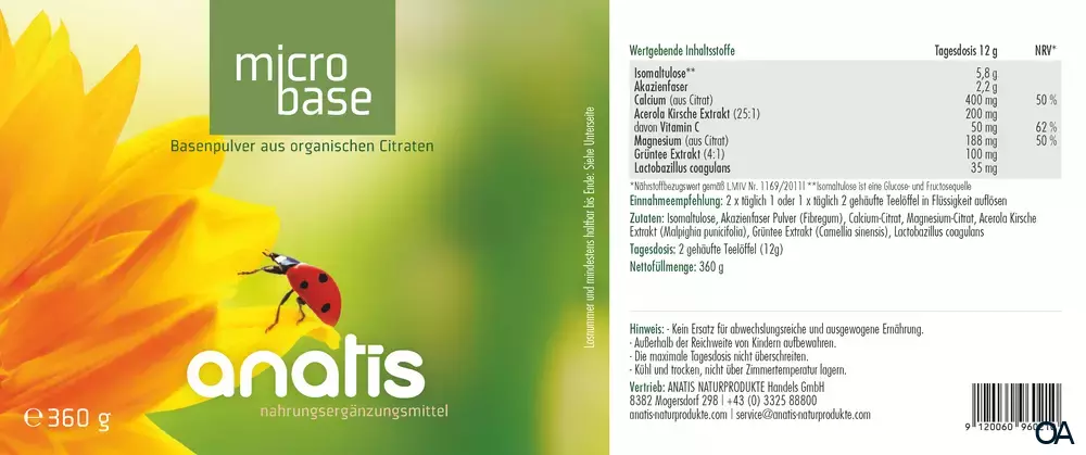 anatis Micro Base Pulver ist ein Basenpulver der aller neuesten Generation und zur Langzeiteinnahme geeignet. Aus gut aufnehmbarem, organischem, mikronisiertem Calciumcitrat- und Magnesiumcitrat im wichtigen Verhältnis 2 zu 1.