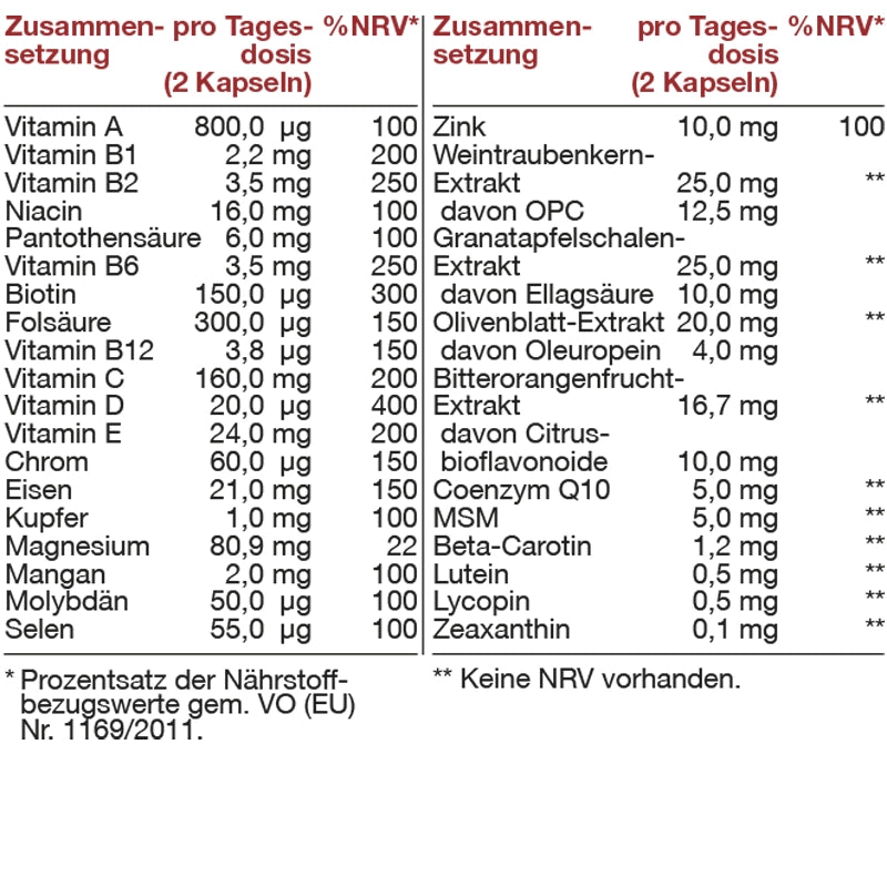2 x täglich 2 Kapseln mit Flüssigkeit einnehmen.