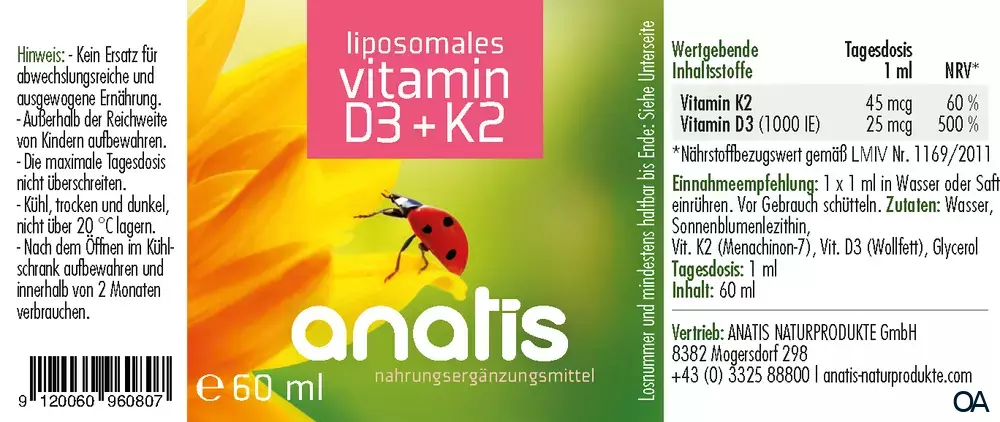 Produktinformationen "anatis liposomales Vitamin D3+K2 Tropfen"