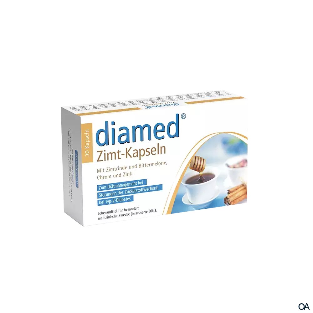 diamed® Zimt-Kapseln dienen der diätetischen Behandlung bei Störungen des Zuckerstoffwechsels im Rahmen eines Diätplanes bei Typ-2-Diabetes. diamed® Zimt-Kapseln enthalten pflanzliche Extrakte aus der Zimtrinde und der Bittermelone in standardisierter, hochkonzentrierter Form sowie die Mikronährstoffe Chrom und Zink zur natürlichen Regulierung des Blutzuckerspiegels. Die tägliche Einnahme von diamed® Zimt-Kapseln hilft therapiebegleitend, die Blutzuckersituation des Diabetikers zu verbessern.