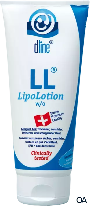 dline® LL® - LipoLotion ist eine Wasser in Öl Lotion mit einem Lipidgehalt von 30 %, besonders für trockene, sensible, irritierte und schuppende Haut geeignet.