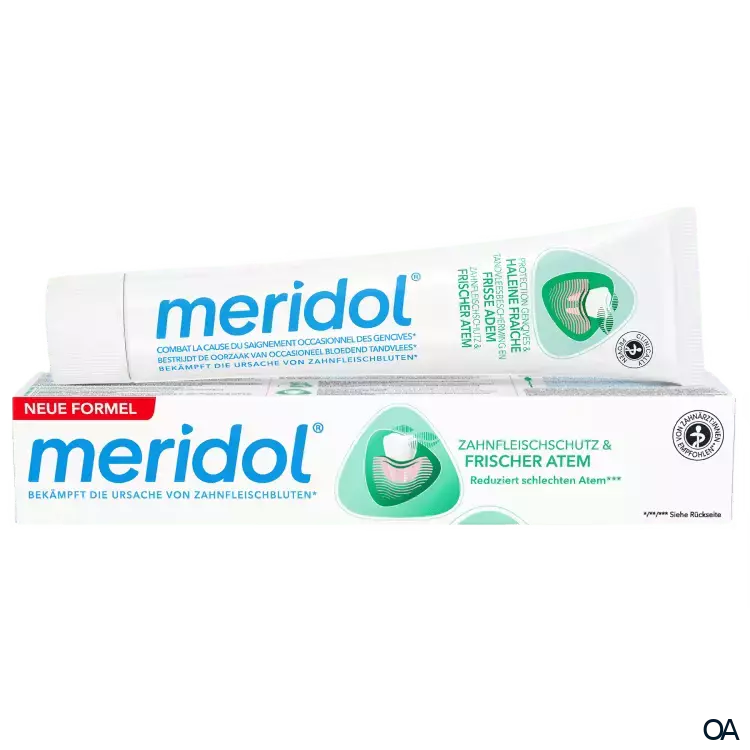 meridol Zahnfleischschutz & frischer Atem Zahnpasta bekämpft die Ursache von Zahnfleischbluten und Mundgeruch**.