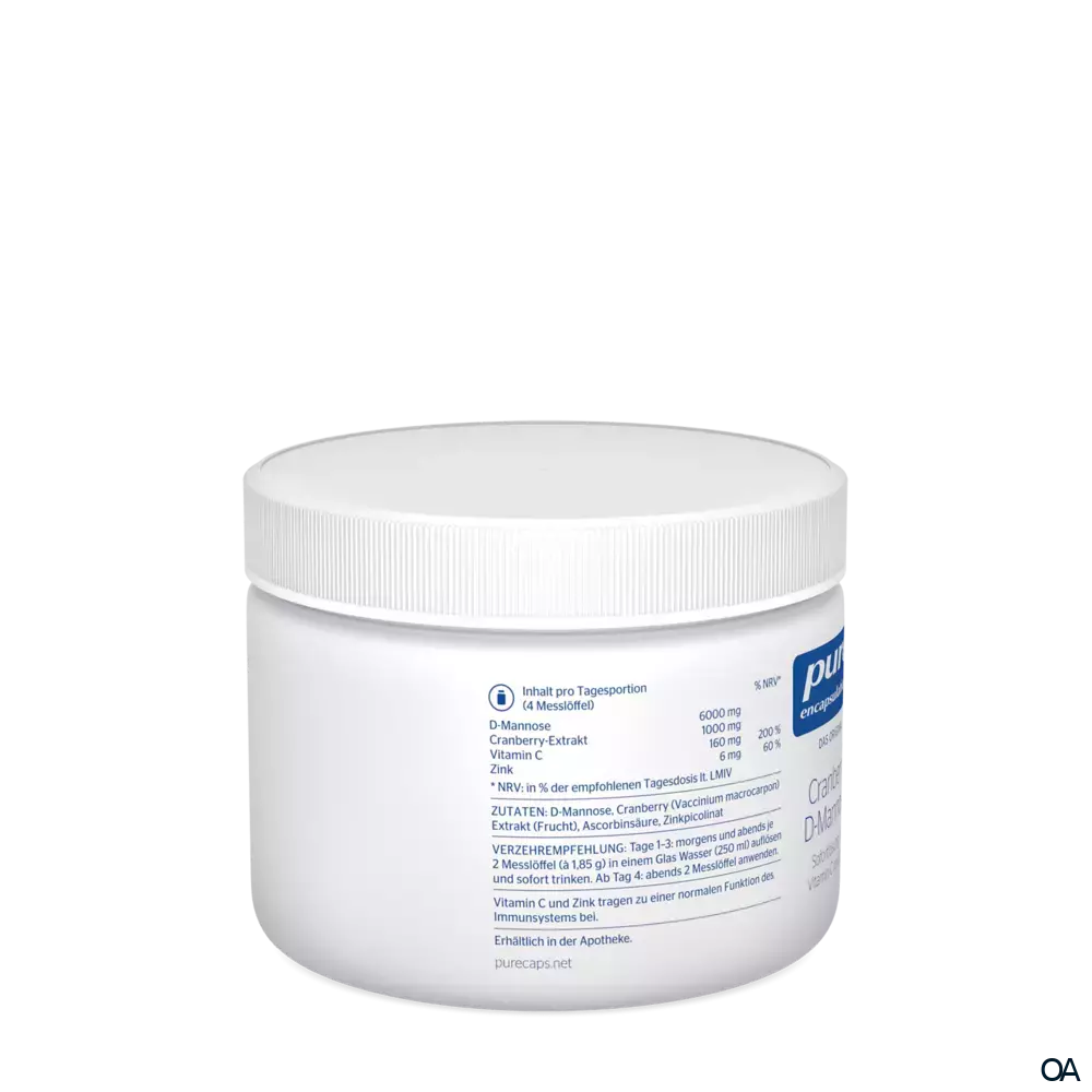 Zutaten: D-Mannose Cranberry (Vaccinium macrocarpon) Extrakt (Frucht)AscorbinsäureZ inkpicolinat