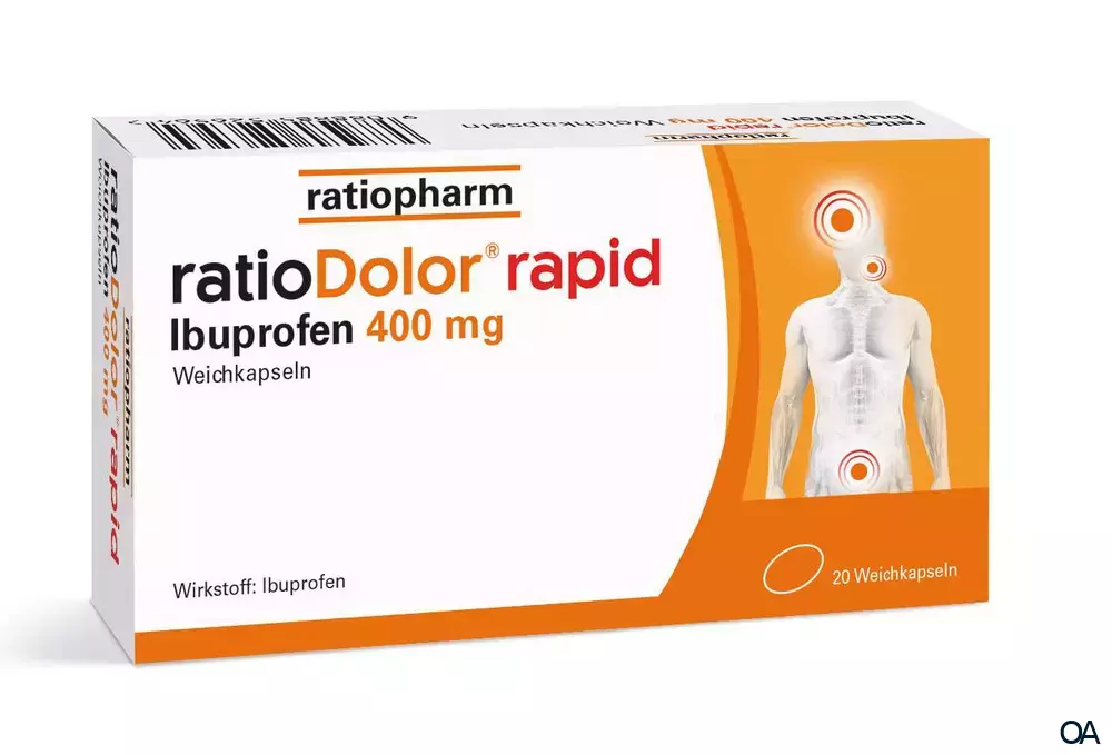 - Der Wirkstoff ist Ibuprofen. Jede ratioDolor rapid Ibuprofen 400 mg Weichkapsel enthält 400 mg Ibuprofen.